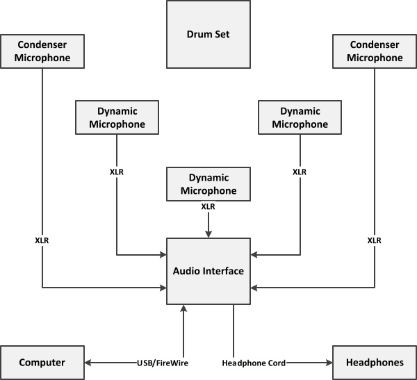 Most of the other setups described here only require a couple inputs, but with 5 or more XLR cables coming in you'll want to make extra sure you have enough preamps.